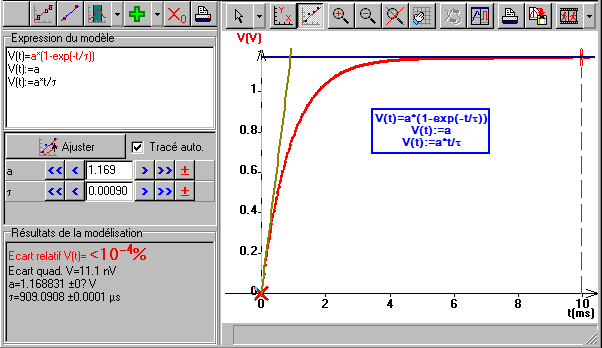 L'intersection de ces deux droites intervient à l'instant: t = t . On utilisait souvent cette propriété pour évaluer la constante de temps.