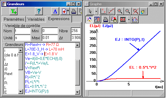 Conservez les valeurs de R et L pour tracer les bilans d'énergie comme dans les simulations de la partie théorique. Imprimez, décrivez et commentez les courbes obtenues.