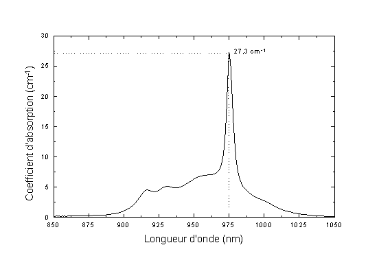 Le spectre dabsorption du verre codopé erbium et ytterbium présente un maximum de 27,3 cm-1 au voisinage de 975 nm correspondant au spectre démission des diodes laser à base de InGaAsP (voir Figure 2).