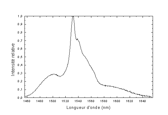 Le spectre de fluorescence de cette matrice présente un maximum démission vers 1,53 µm correspondant à la zone de sécurité oculaire (voir Figure 3).
