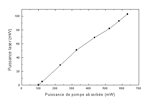 Figure 5 : Puissance laser en fonction de la puissance de pompe absorbée.