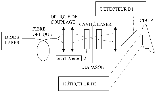 Le laser proposé est fondé sur lutilisation dun verre codopé erbium et ytterbium pompé optiquement par une diode laser fibrée de puissance et émettant vers 980 nm.