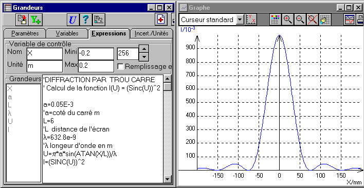 4.2.2 Diffraction à l’infini : ouverture carrée (fin)