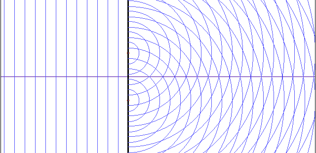 par des demi-cercles concentriques tels que Rk+1-Rk=