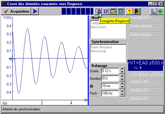 Lancer l'acquisition et cliquer hEnregistreRegressi