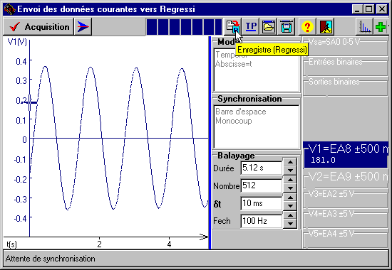 Lancez une nouvelle acquisition et cliquez hEnregistre Régressi